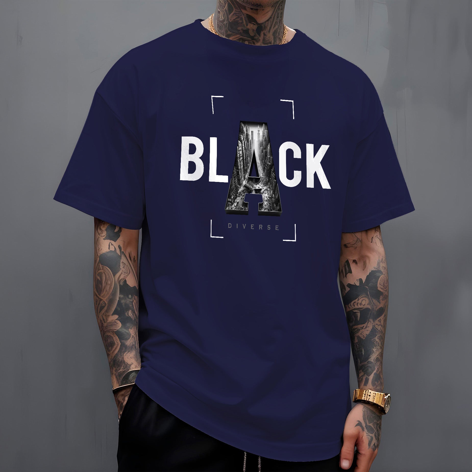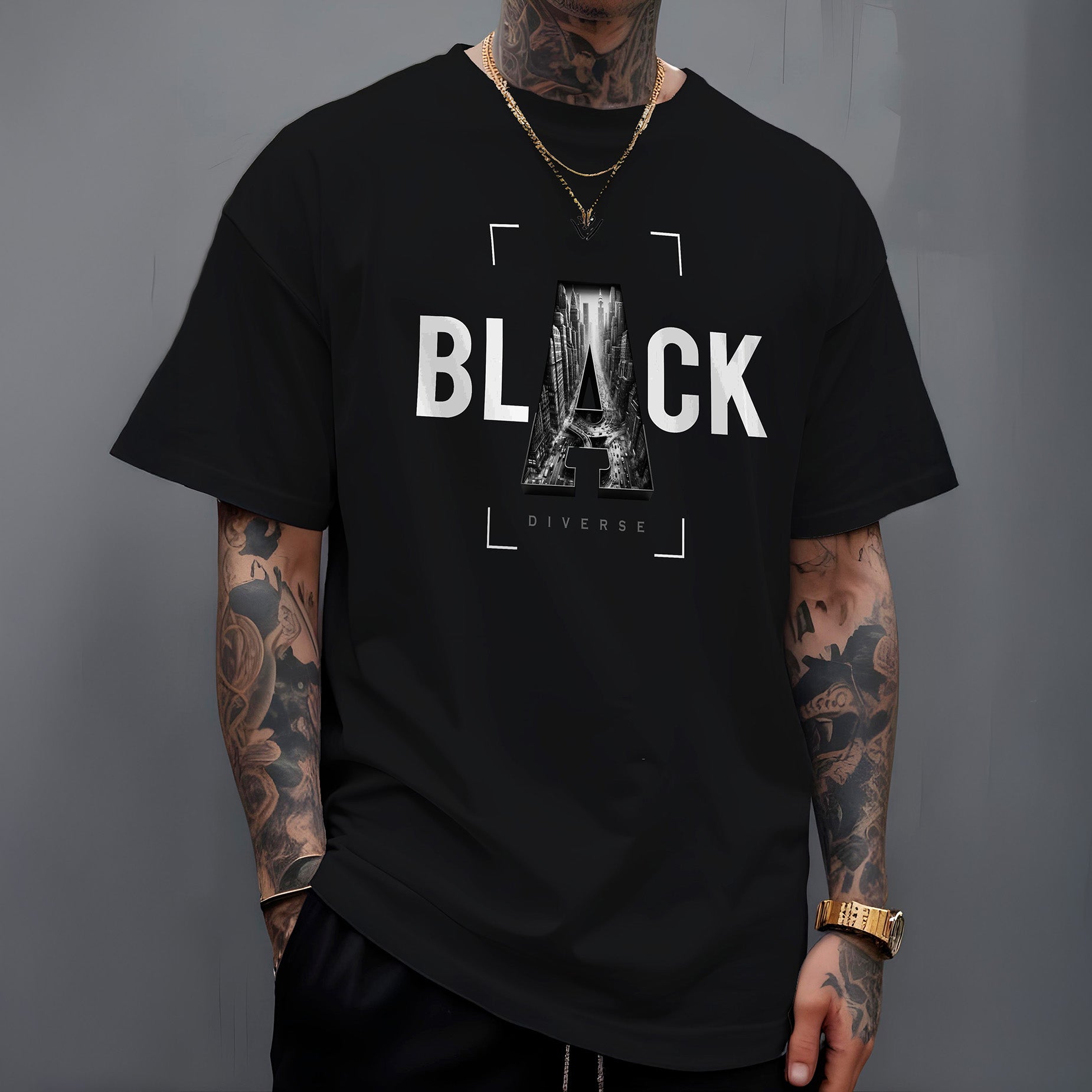A Camiseta " Metropolitan Black " de Diversos Estilos é uma homenagem à complexidade e ao dinamismo das metrópoles modernas. Ideal para os amantes da vida urbana e para aqueles que encontram beleza na arquitetura e no ritmo das grandes cidades.