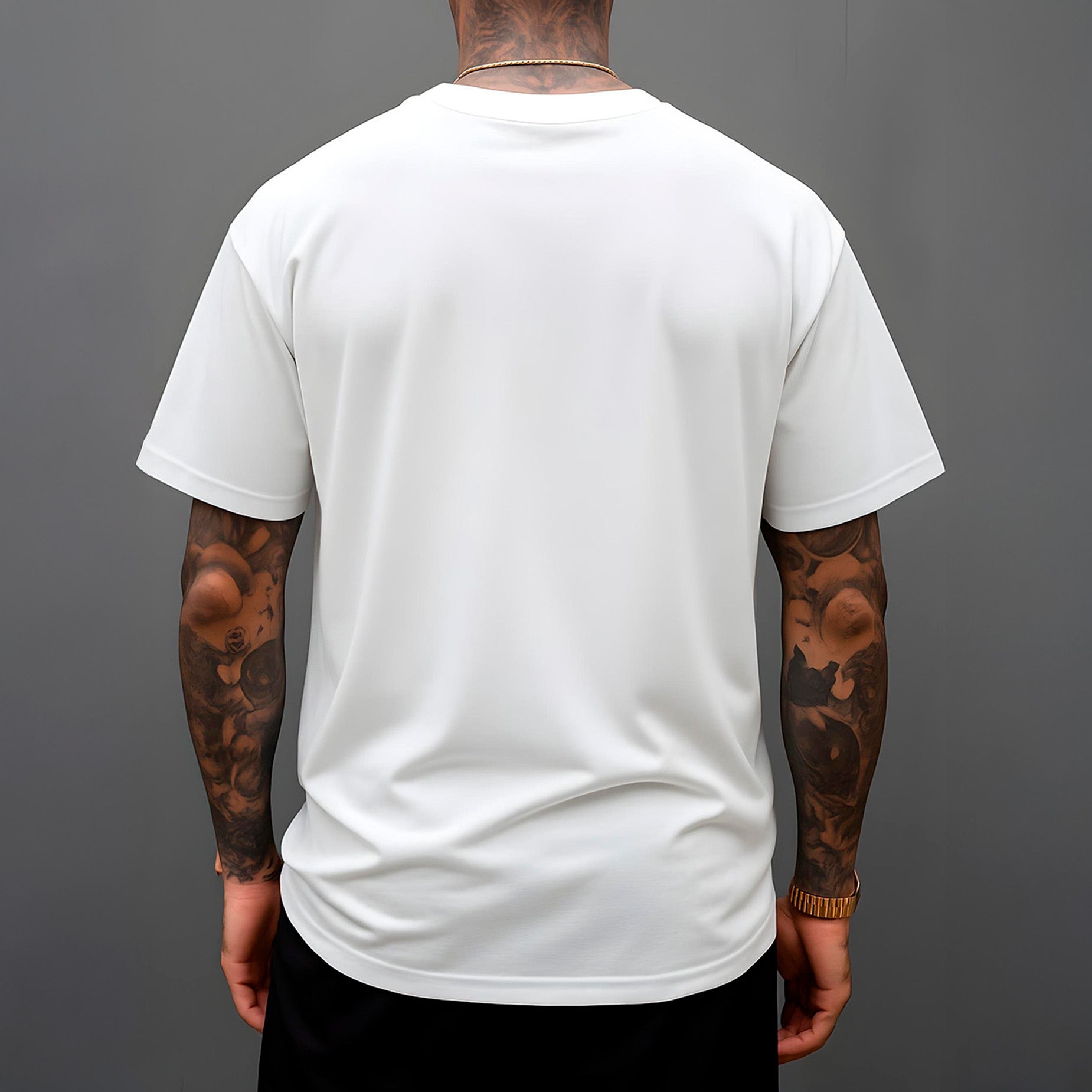Feita com tecido 100% algodão de alta qualidade, esta camiseta é sinônimo de conforto e resistência. A escolha do material garante que ela mantenha a forma e a textura, mesmo após inúmeras lavagens, e o algodão macio é perfeito para o uso diário.