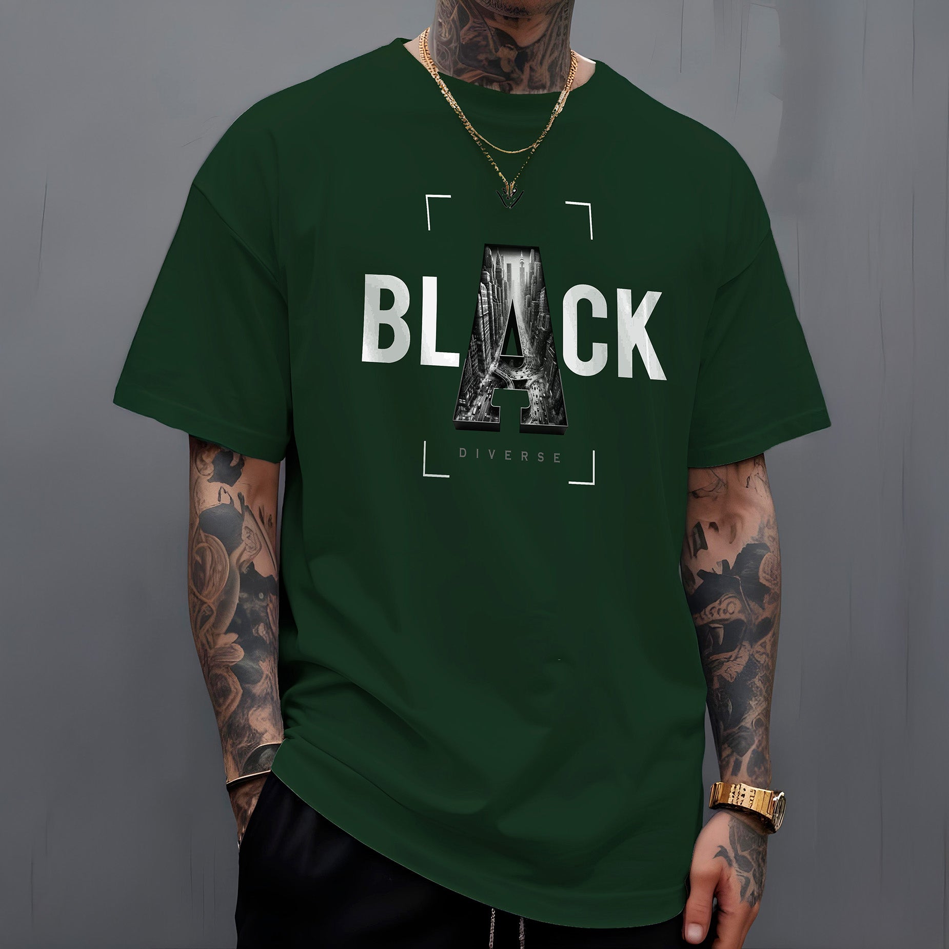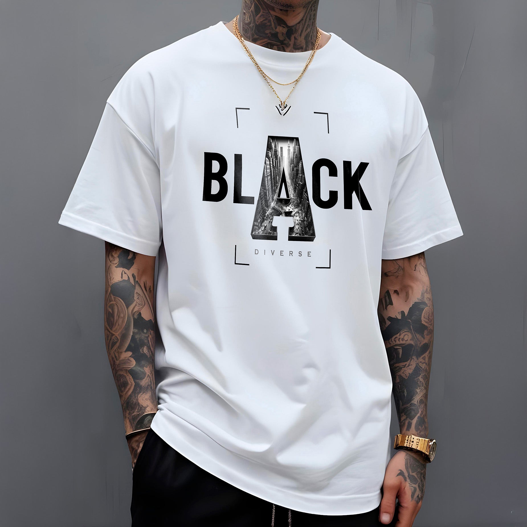 A Camiseta "Metropolitan Black" da Diverse Estilos convida você a celebrar a energia e a inspiração que só as grandes cidades podem oferecer. Vista esta peça e sinta-se imerso na cultura urbana, onde cada rua, cada prédio tem uma história para contar.
