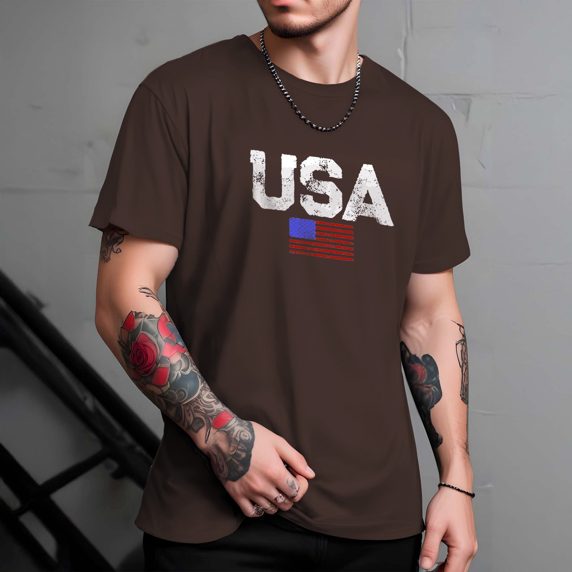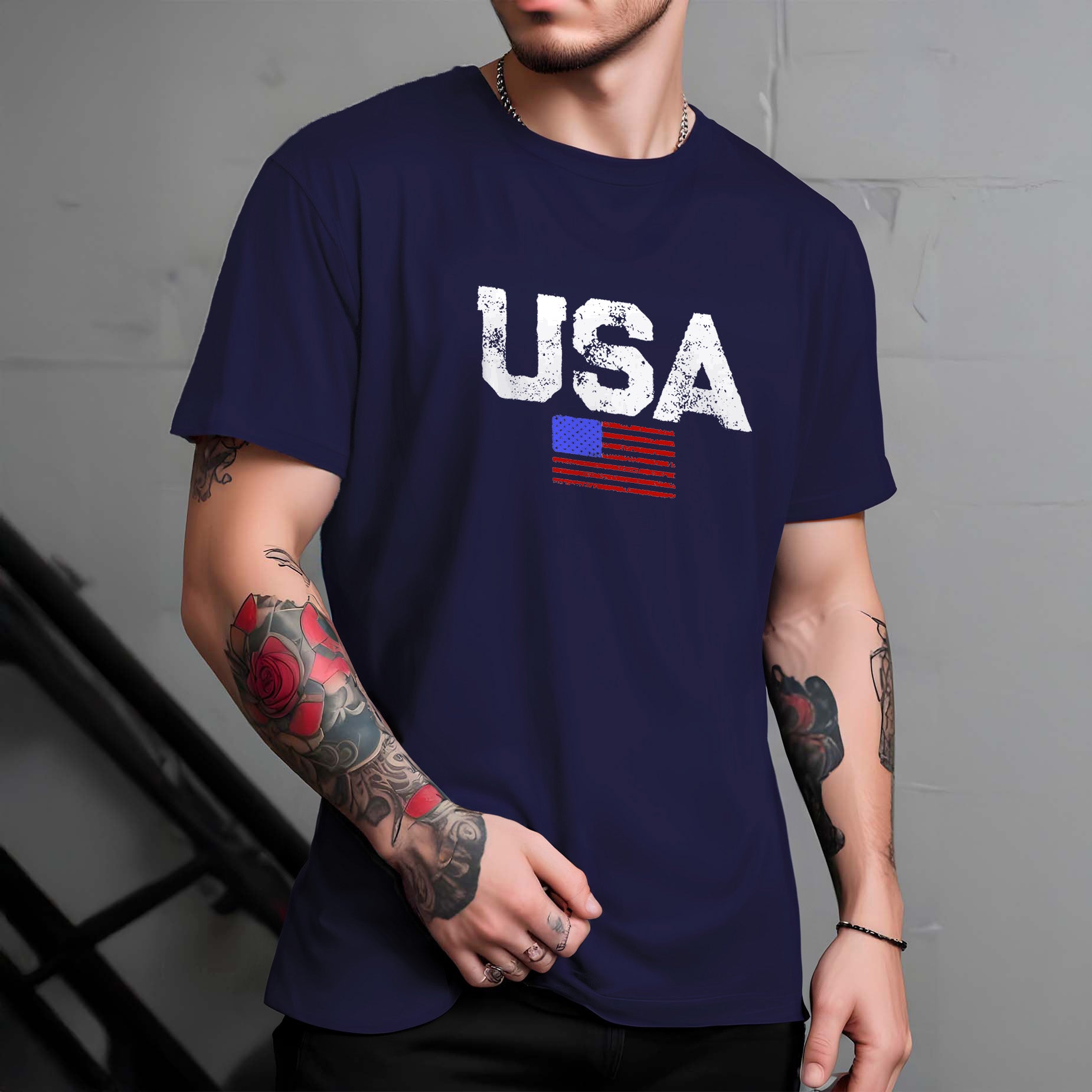 O design destaca a estampa " USA ", em letras Estilizadas e distintas, transmitindo força e unidade. O estilo minimalista, porém marcante, torna esta camiseta uma peça versátil, ideal tanto para benefícios casuais quanto para eventos temáticos e celebrações patrióticas.